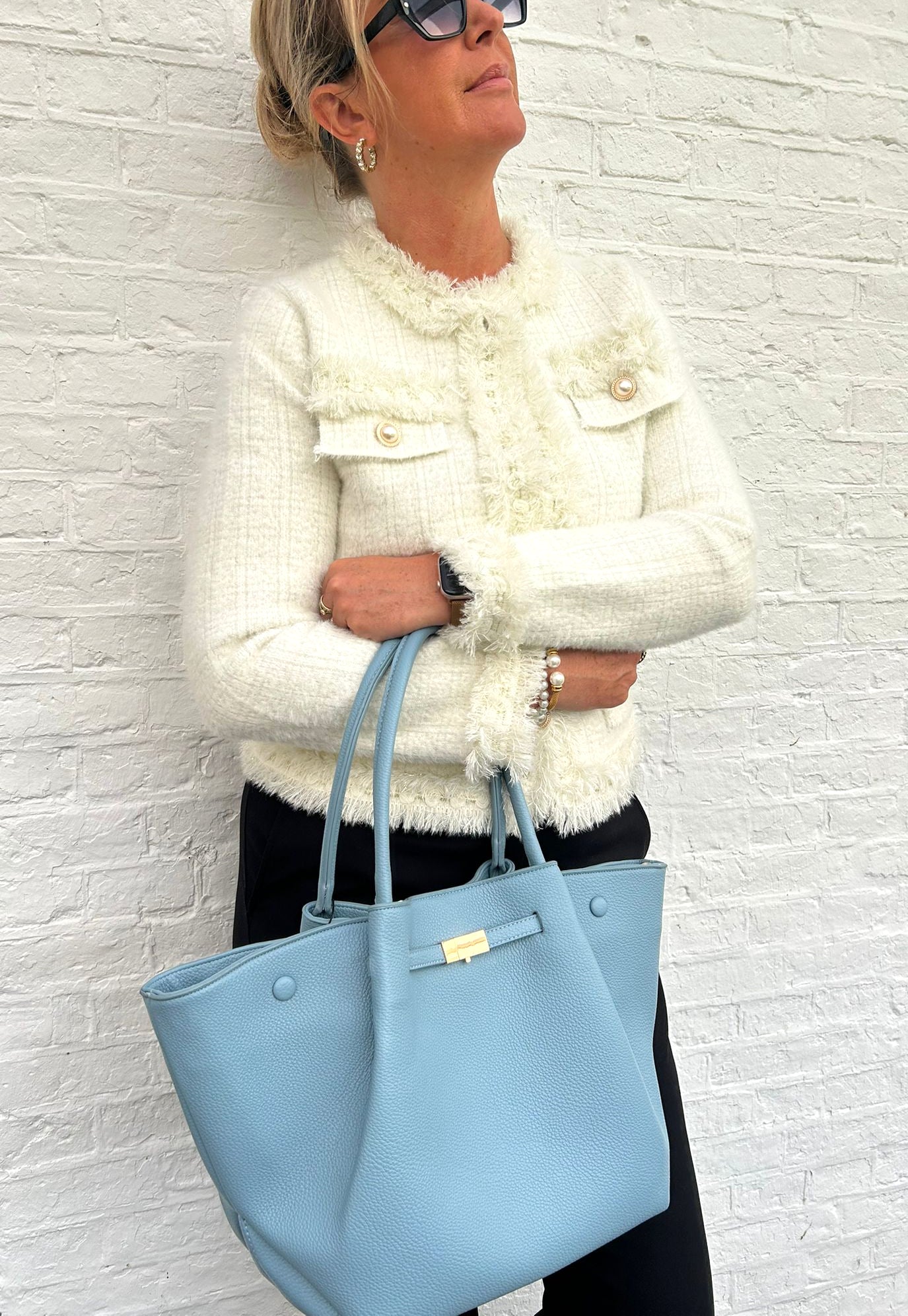 Setze ein modisches Statement mit dieser eleganten Damen Handtasche in Hellblau ode Schwarz. Gefertigt aus hochwertigem Lederimitat mit feiner Struktur, bietet sie nicht nur einen stilvollen Look, sondern auch ausreichend Platz für deine Essentials.