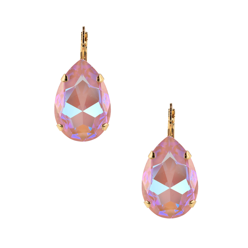 Diese kurzen Eva-Ohrhänger aus tropfenförmigen Kristallen sind ein echter Hingucker! Die ovale Form verleiht diesem Design noch mehr Stil und sollte in keiner Schmuckkollektion fehlen. Die eleganten Eva-Ohrringe bestehen aus Dusty Pink-Kristallen von Swarovski und sind mit 24-Karat-Gold veredelt.