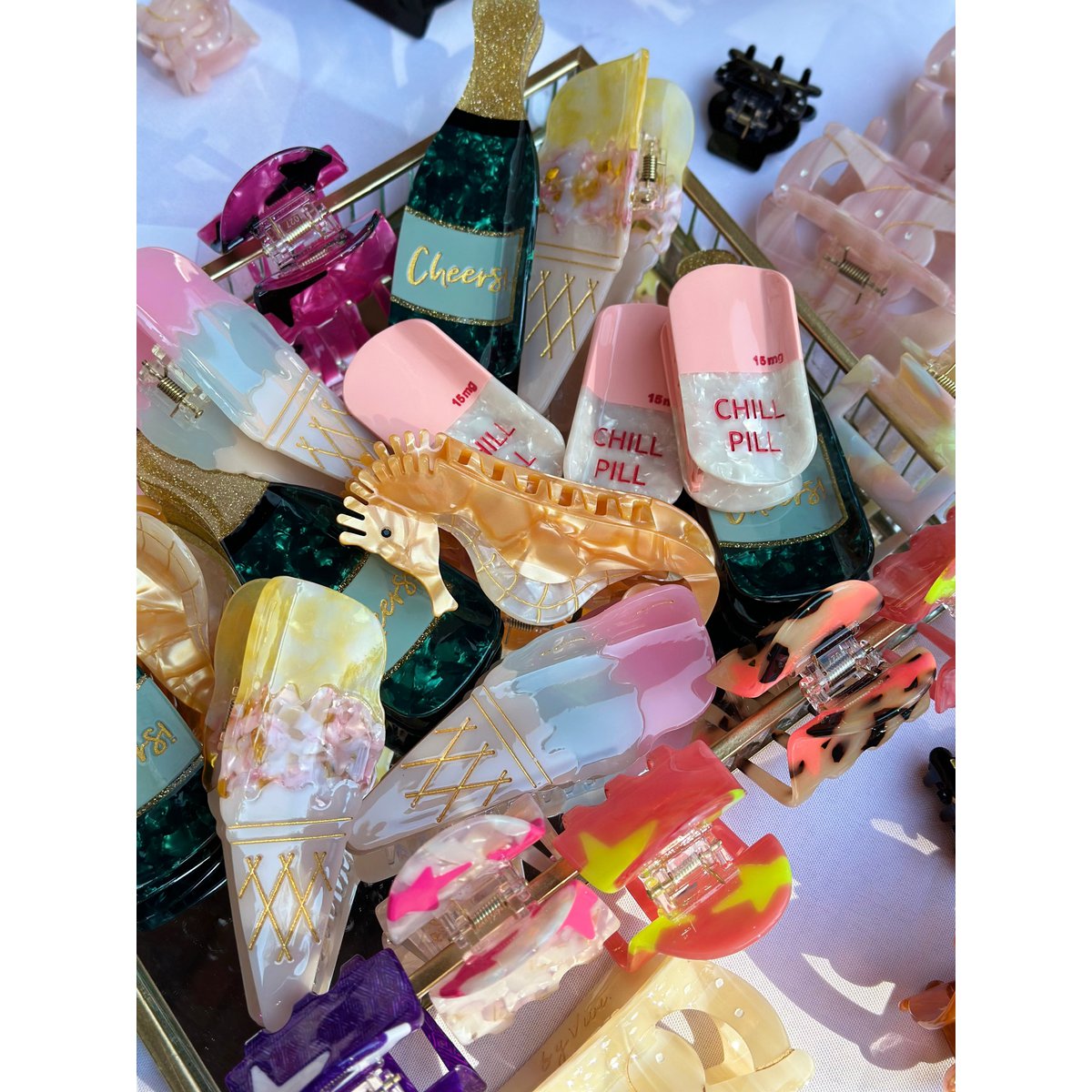 Was braucht man mehr, als unsere Summer Essentials für die Haare? Ob Eis-, Hummer- oder Muschelhaarklammer, sie passen einfach perfekt in den Sommer! 11x4,5x4cm aus Celluloseacetat (Fasern getrockneter Baumwolle) © Design by Vivi.