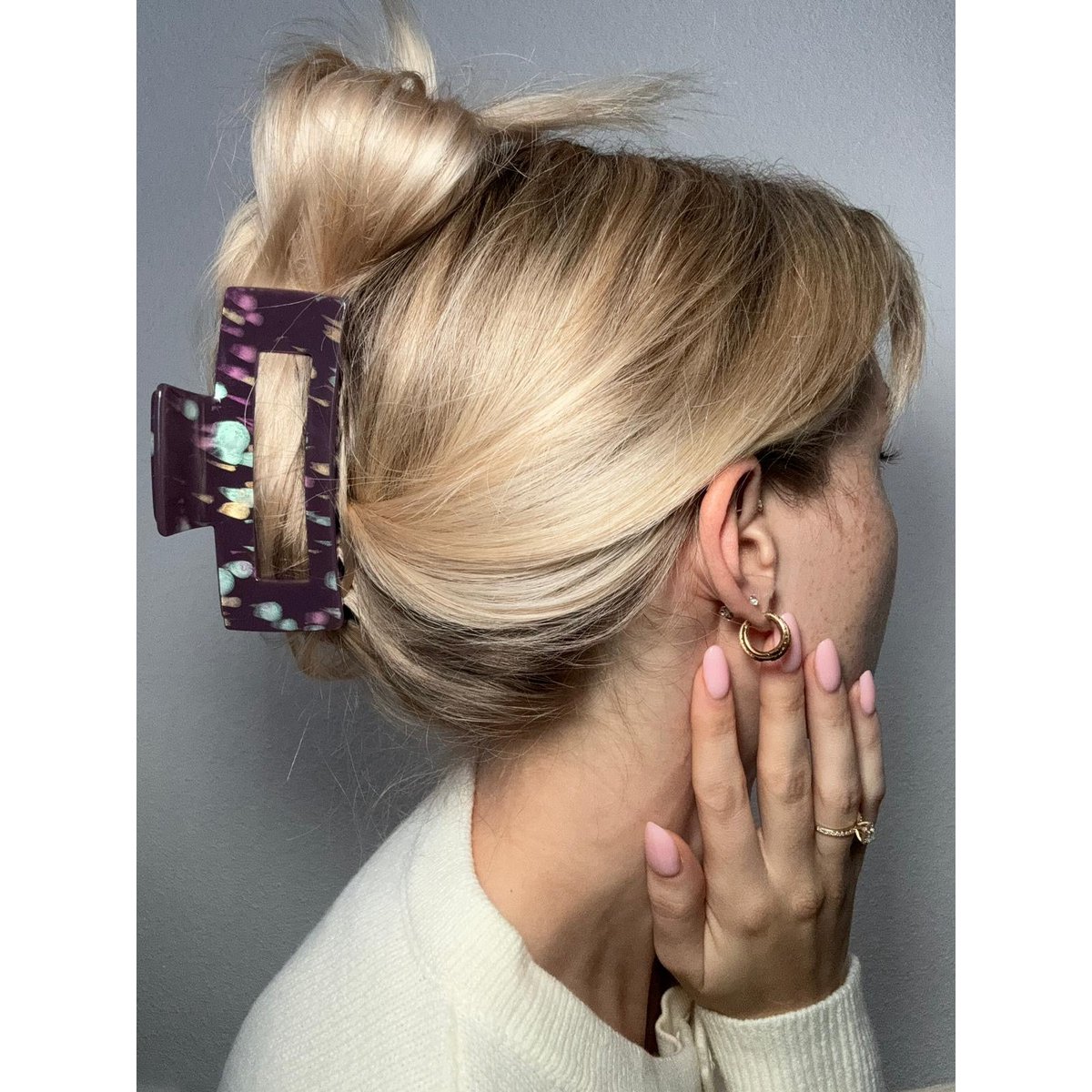 Unsere XL-Haarklammern halten nicht nur mühelos viele Haare im Zaum, sondern kreieren auch im Handumdrehen eine coole Frisur. 12x7x6cm aus Celluloseacetat (Fasern getrockneter Baumwolle) © Design by Vivi.